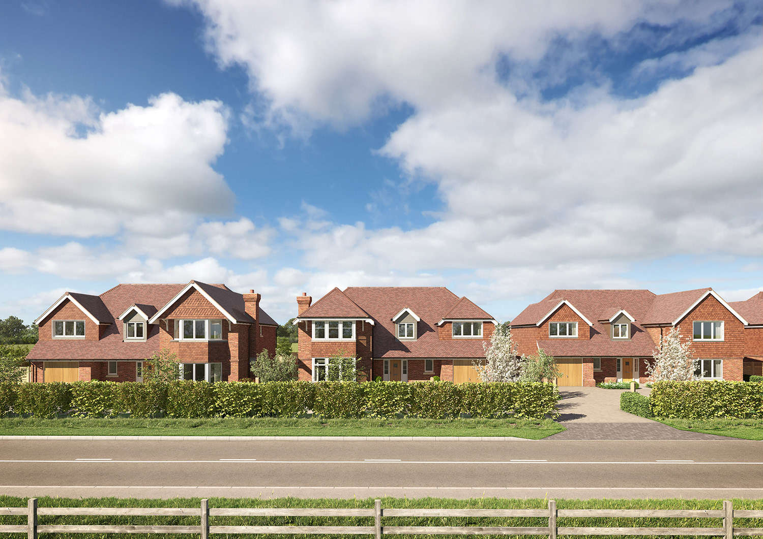 Marketing CGIs for for a development of 5 large family homes, with period detailing typical of the area.