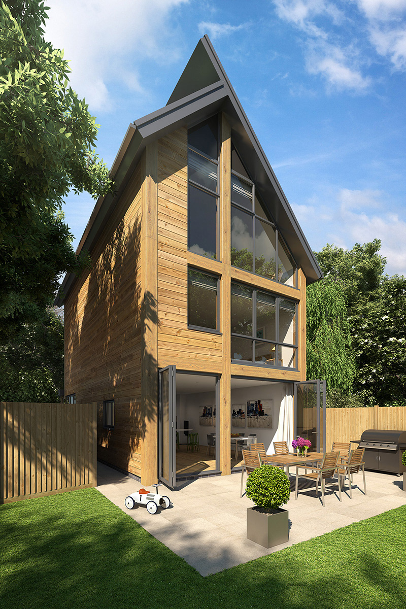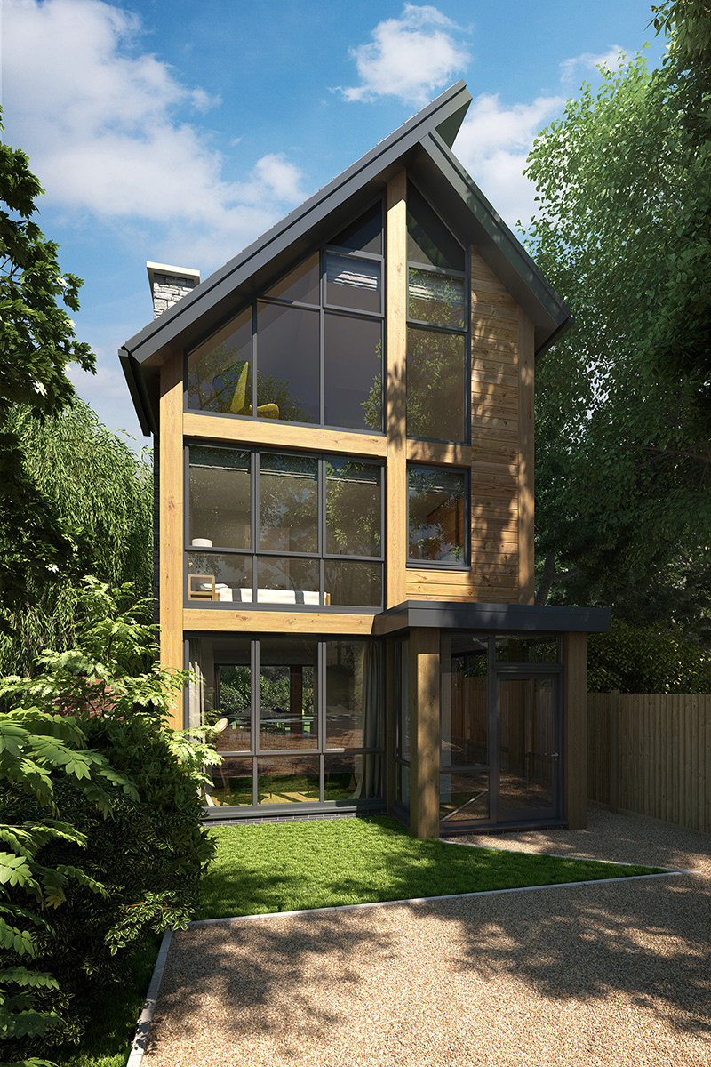 Marketing CGIs for a contemporary oak framed family home, designed to work in harmony with it's surroundings in Chislehurst, UK.