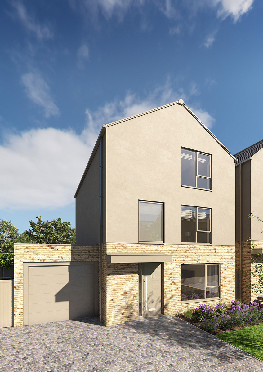 Phase 2 marketing CGIs for a 10 unit housing development on the outskirts of Cheltenham and bordering The Cotswolds Area of Outstanding Natural Beauty.