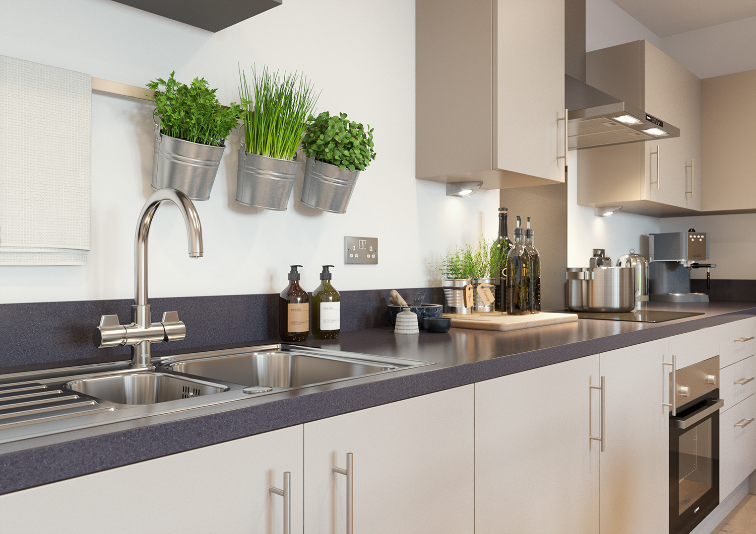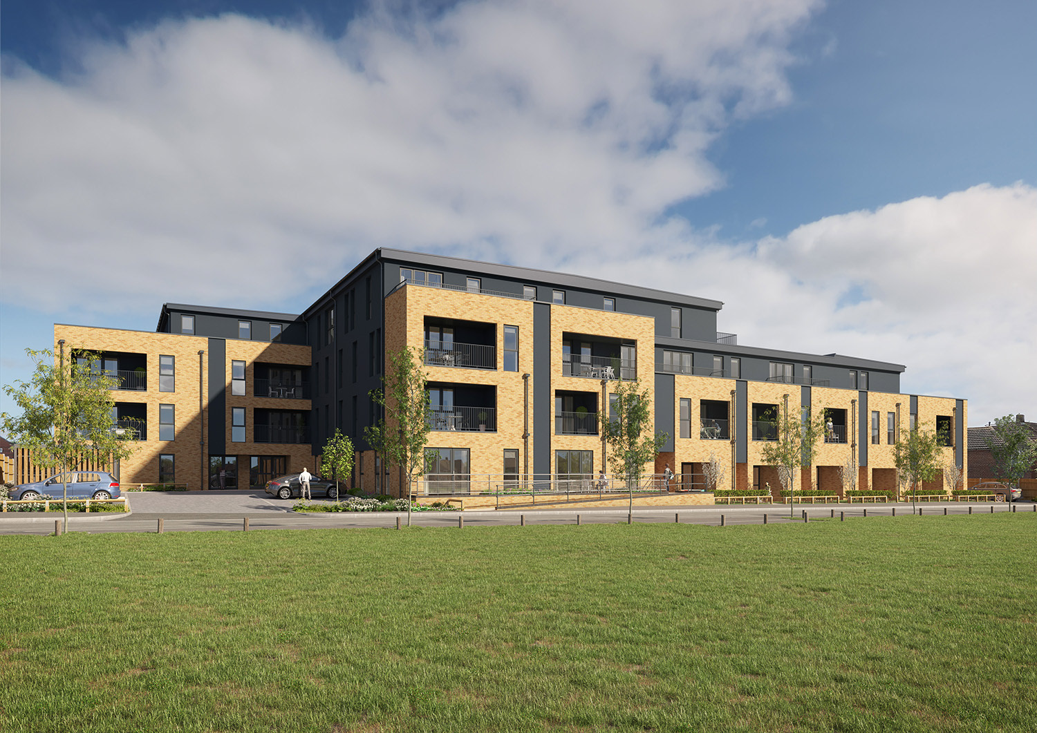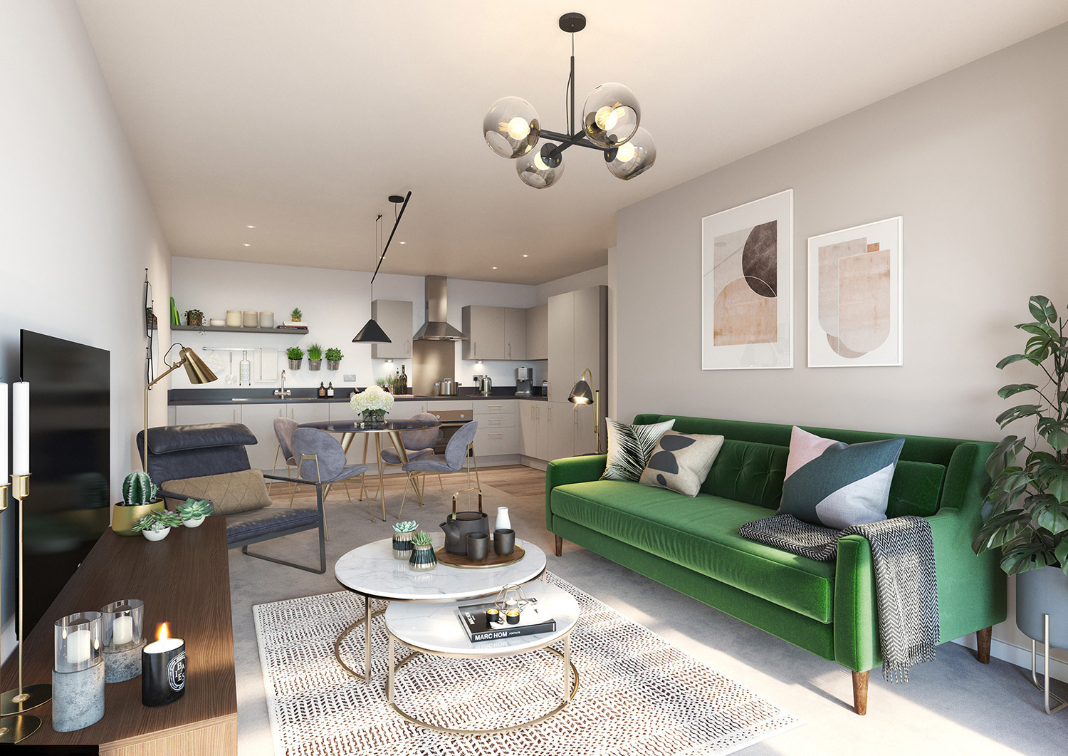 Marketing CGIs & Plans produced for a SharedOwnership scheme in Feltham, West London. The interior styling was developed by us to showcase the high specification contemporary design of the apartments, aimed at young professional buyers.