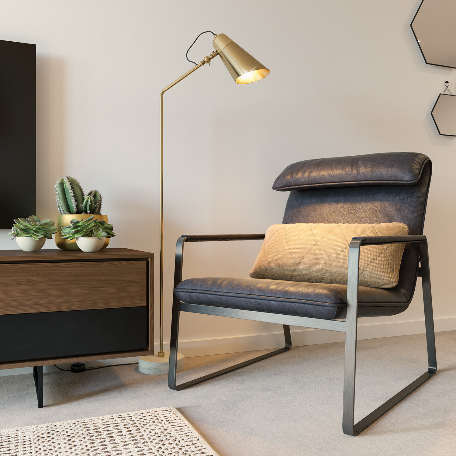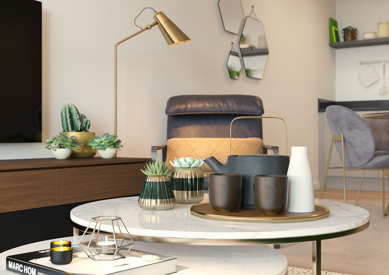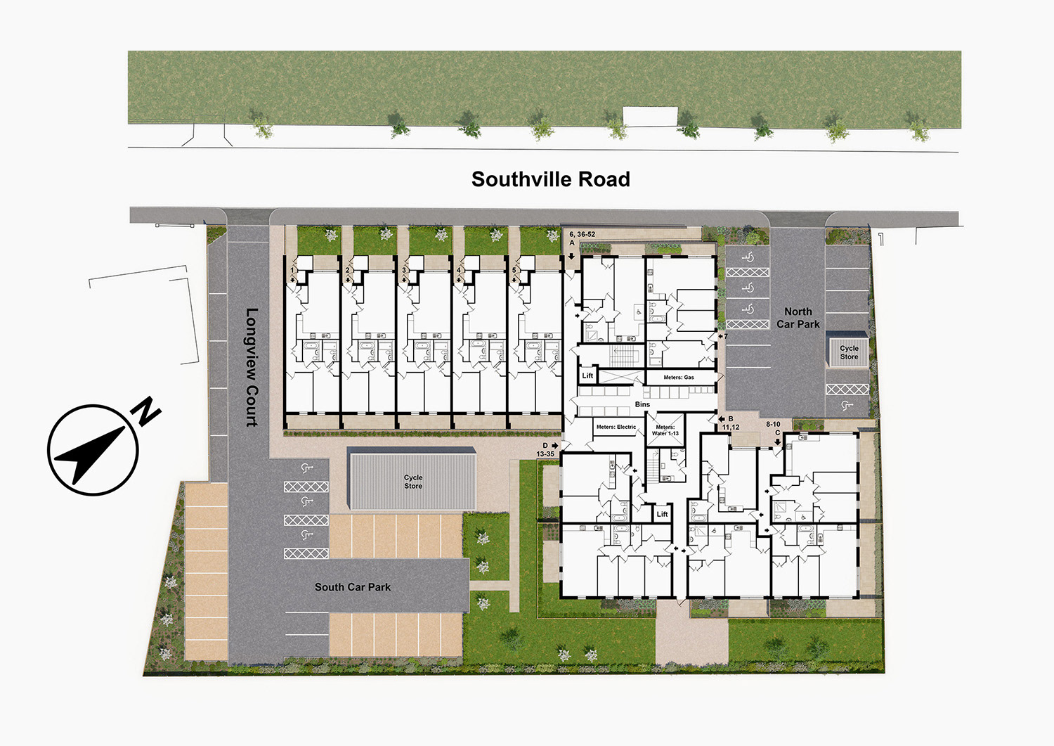 Marketing CGIs & Plans produced for a SharedOwnership scheme in Feltham, West London. The interior styling was developed by us to showcase the high specification contemporary design of the apartments, aimed at young professional buyers.