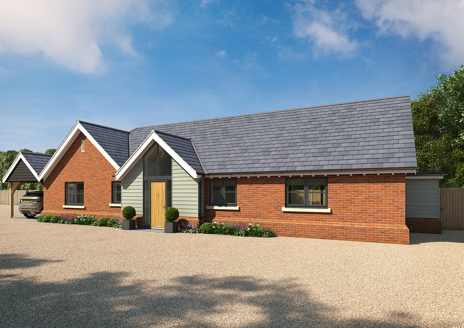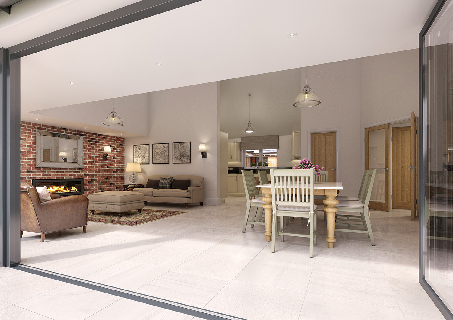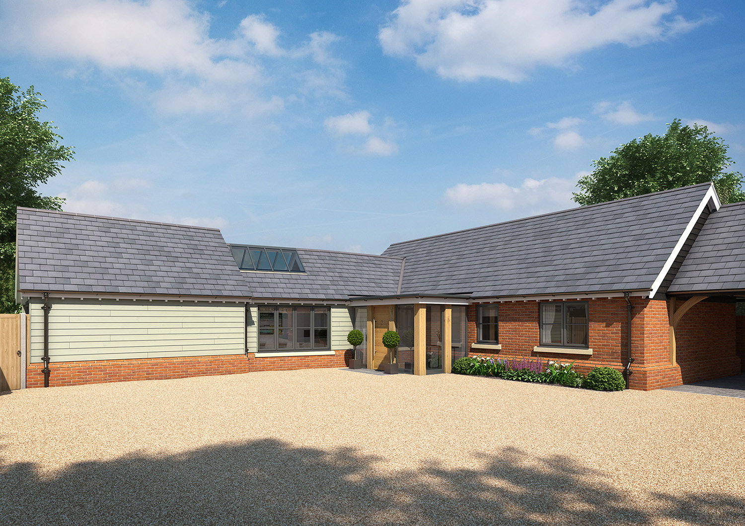 Marketing CGIs for a small development of 3 bungalows in the heart of Kent, with traditional, Stables style exteriors and contemporary open plan interiors in a "Modern Country" look. I also undertook the interior design for this project.