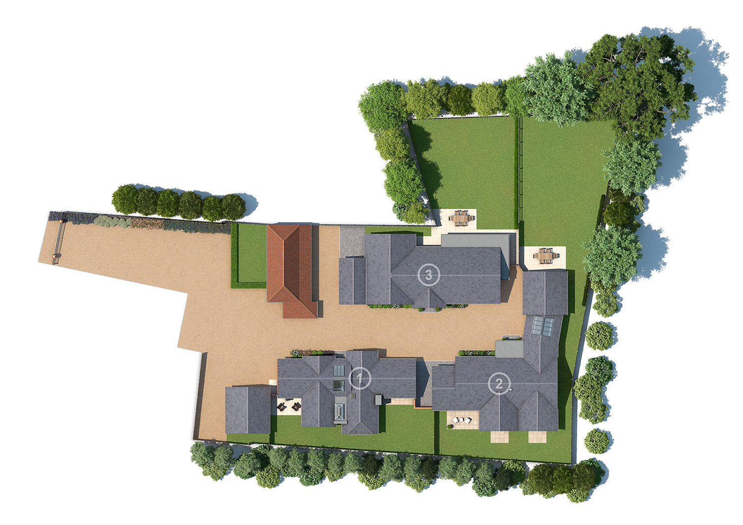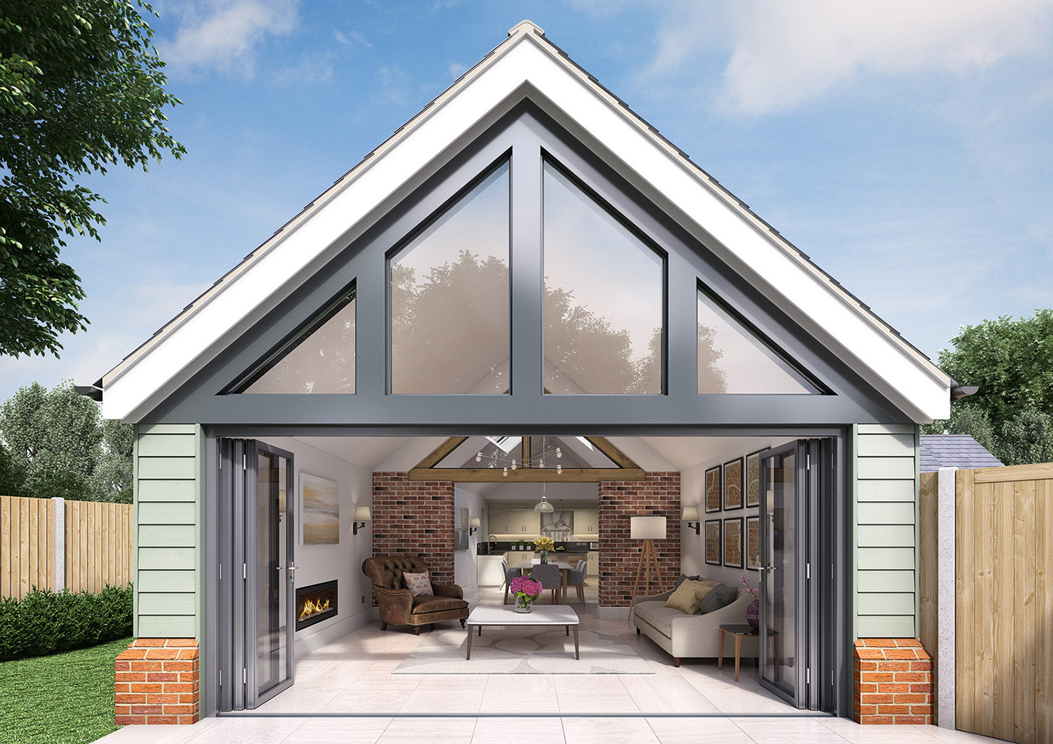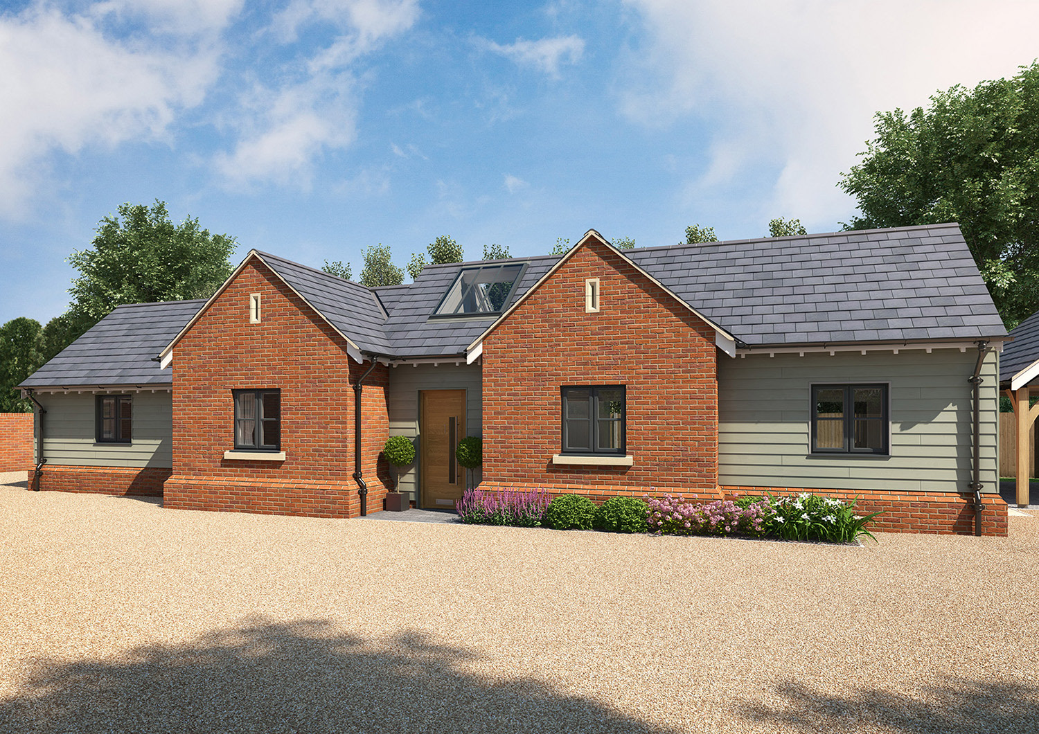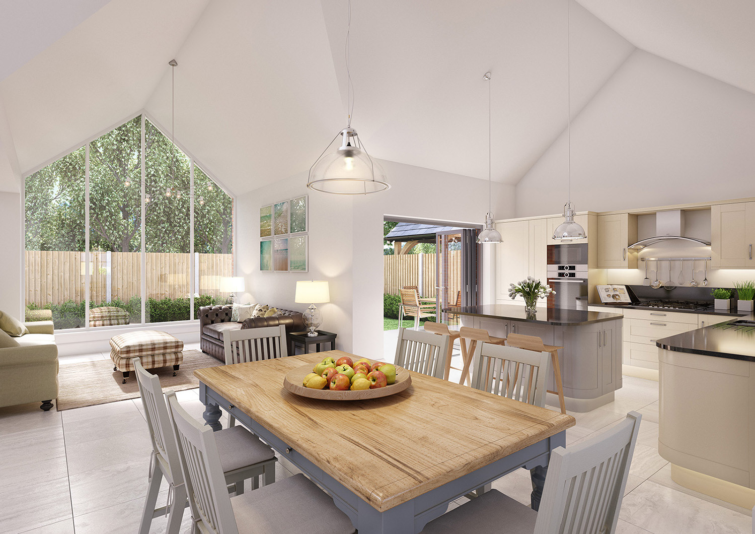 Marketing CGIs for a small development of 3 bungalows in the heart of Kent, with traditional, Stables style exteriors and contemporary open plan interiors in a "Modern Country" look. I also undertook the interior design for this project.
